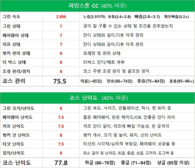 홀마다 그린 속도가 가끔 일정하지는 않았는데 큰 문제 없었습니다.