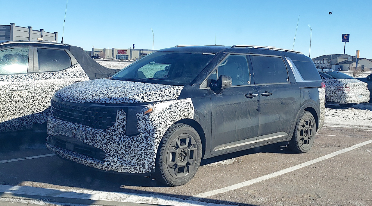 미국 네브래스카 주 렉싱턴에 있는 전기차 충전소에서 포착된 이미지에는 2025년형 기아 카니발 MPV(미니밴) 프로토타입과 제네시스 테스트카도 함께 발견됐다.