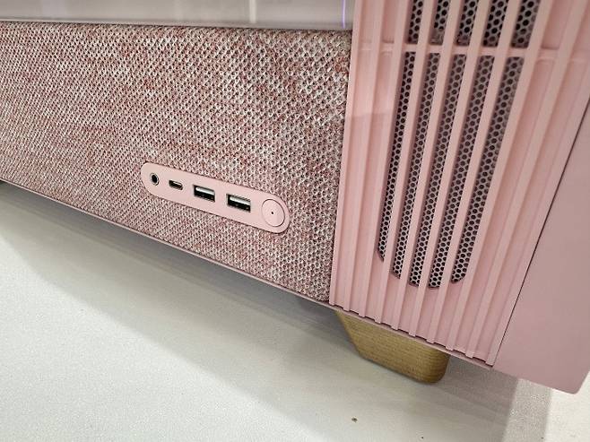 내부는 최대 RTX 4090급 그래픽카드 장착이 가능한 공간을 제공하며, USB-C, USB-A, 오디오 잭 등 다채로운 I/O 포트를 전면 하단에 배치해 실용성을 챙겼다. 색상은 핑크, 화이트, 블랙 세 가지 색상으로 구성되었는데 톤이 다운되어 쨍한 느낌이 아니라 실내 어느 공간에 두어도 자연스럽게 배치될 것 같다.