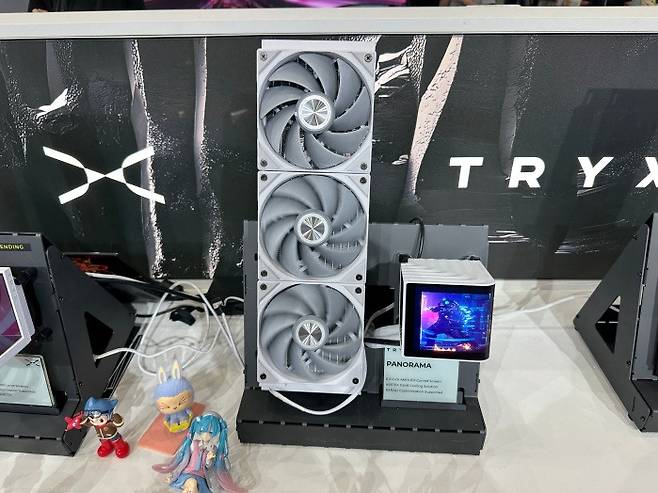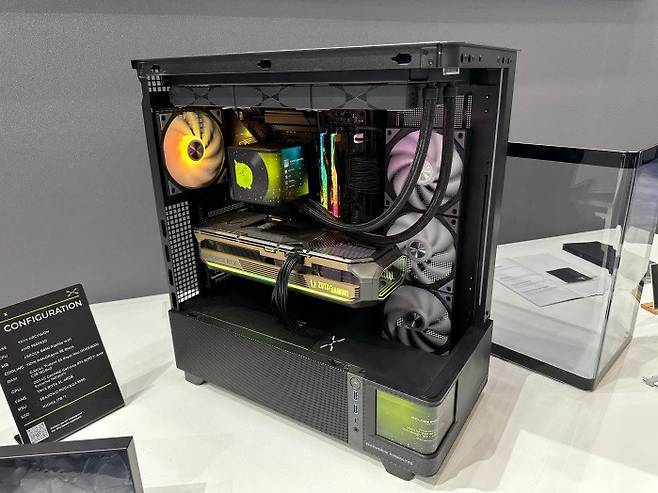 실제 조립된 모델도 전시되어 있었는데 FLOVA 케이스와 함께 TRYK의 AMOLED 일체형 수랭쿨러까지 더해져 화려하면서 감각적인 케이스 세팅을 할 수 있었다. 쿨링, 감성, 공간 활용까지 모두 챙기고 싶다면 FLOVA를 눈여겨 볼만하다.