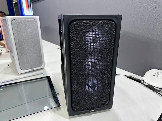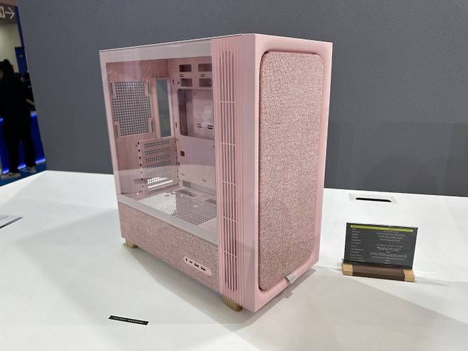 TRYK의 FLOVA 케이스를 전시한 공간은 필자의 시선을 빼앗게 만든 존재였다. 컴퓨텍스 2025 행사장을 여럿 돌며 어항형 케이스, 우드 케이스, RGB 극대화 케이스 등 화려한 케이스만 목격하다가 따뜻한 색감의 직물 소재가 적용된 TRYK의 케이스는 신선하게 다가왔다.