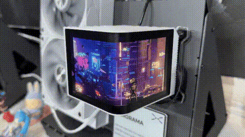 TRYX의 수랭 쿨러 'PANORAMA'는 고성능 쿨링과 함께 6.5인치 AMOLED 곡면 디스플레이가 탑재되어 압도적인 비주얼 만족감을 선사한다. 가장 눈에 띄는 포인트는 단연, 6인치 L자형 커브드 디스플레이다. 2K 해상도, 60 프레임을 지원해 플래그십 스마트폰을 보는 것 같은 디스플레이 완성도를 갖췄다.