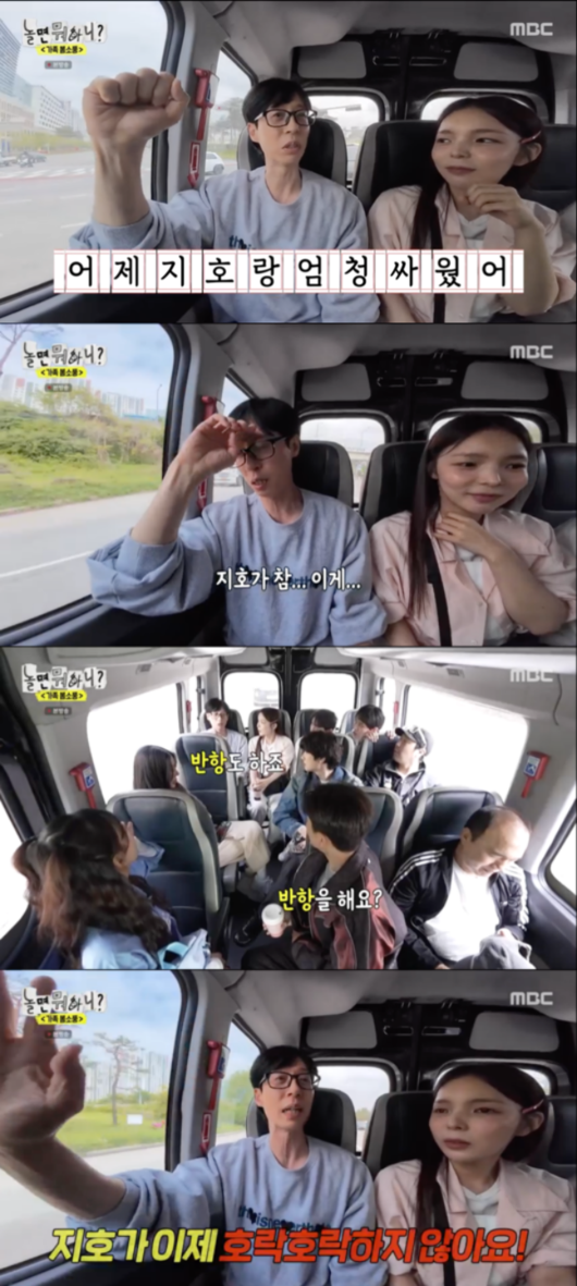 유재석은 ‘틈만 나면’ 외에 MBC ‘놀면 뭐하니’에서도 ‘현실 아빠’의 일상을 보여줬다. 지난 4일 방송에서 근황 토크를 하던 중 유재석이 “어제 지호랑 엄청 싸웠어”라고 털어놓았다. 유재석은 “청소년기잖아요. 지호가 너무 예민해. 반항도 하고, 호락호락하지 않다”고 입을 열었다. 하하는 “형이 혼냈다고 안하고 싸웠다고 하잖아. 혼내는 건 훈육인데, 싸우는거야. 내가 너무 유치해지고 너무 힘들어”고 이야기했다.