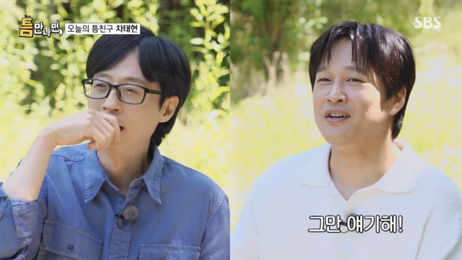 지난 28일 방송된 SBS ‘틈만 나면’에 ‘틈 친구’로 차태현이 출연했다. 차태현은 유재석, 유연석과는 절친한 사이로, 앞서 유재석 유튜브에 여러 차례 출연한 바 있다. 절친인 만큼 이들은 허심탄회하게 대화했다.