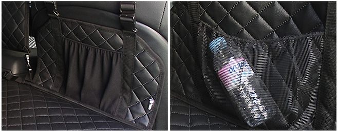 앞 시트와 연결하는 부분에 그물망 수납공간이 있습니다. 휴지, 간식, 물병 등을 간편하게 보관하기에 제격이죠.