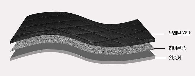 완충제, 하이론 솜, 우레탄 원단의 3중 구조 원단이 차체 소음이나 진동을 최소화 시켜줍니다. 2중 충격흡수로 안정감 있는 뒷자리를 만들어주죠. 다만, 전체하중 60kg 이상은 안전상의 문제가 발생할 수도 있어 주의해야 합니다.