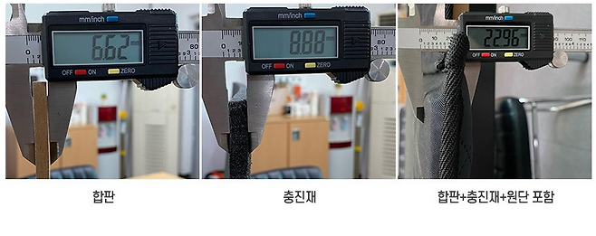 합판 부분 6.6mm, 충진재 약 8.8mm를 포함해 원단 포함 약 22.9mm의 견고한 두께로 튼튼합니다. 아이와 반려동물을 안전하게 지지해줍니다.