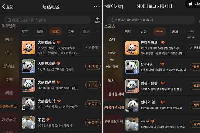 중국 SNS인 ‘웨이보’에서 언급된 판다 순위를 확인할 수 있었는데요.