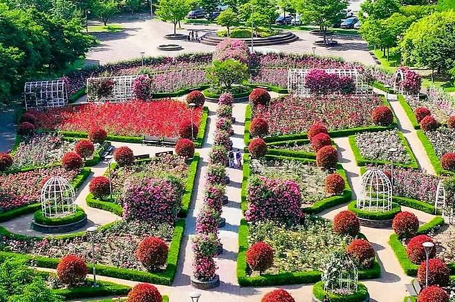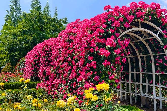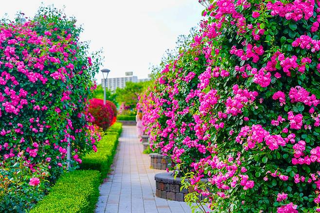 수백 종에 달하는 다양한 장미들이 서로 어우러져 마치 그림처럼 아름다운 풍경을 연출한다.