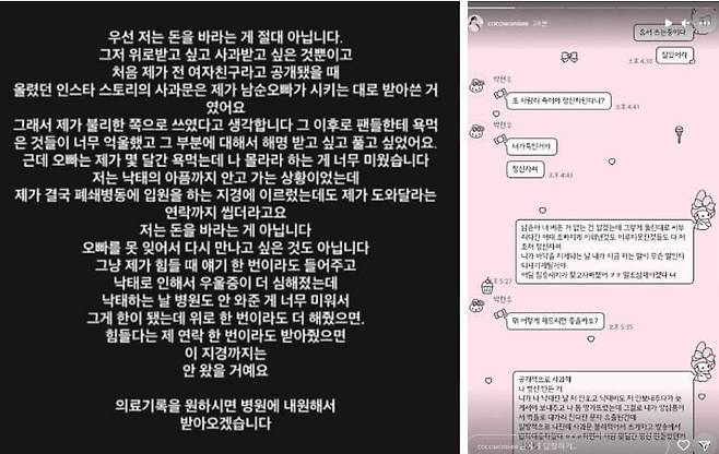 히콩이 남순에게 “오빠 주위에서 죄다 오빠랑 잤대”, “내가 오빠 만났던 거 안 쪽팔리게 해주라”라고 보낸 메시지도 공개됐습니다. 히콩은 남순을 가리켜 “미친XX”라고 욕설을 적었고, “왜 나 임신중절 시켰냐”, “왜 내 연락 다 무시했냐”, “왜 나를 버렸냐”라고 보냈습니다. 80회에 걸쳐 전화·문자 등을 보내며 항의했습니다.
