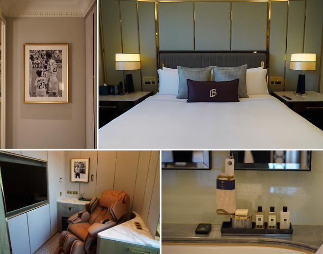 각 객실에는 베컴의 취향을 녹여냈다. 공간 곳곳에는 베컴이 직접 디자인하고 색을 고른 인테리어 소품들과 베컴 가족의 사진들로 채웠다. 또한 베컴이 디자인했음을 뜻하는 ‘DB’로고를 새겨 특별한 공간임을 의미하고 있다.
