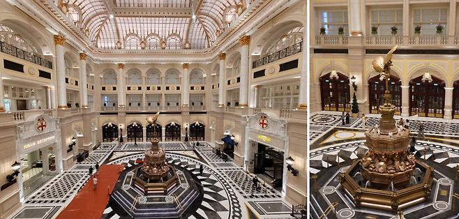 런더너 마카오 입장과 함께 가장 먼저 만나게 되는 공간은 메인 로비인 수정궁이다. 1851년 하이드 파크(Hyde Park)에서 열린 만국박람회(The Great Exhibition)를 위해 지은 수정궁에서 영감을 받았다. 풍부한 대리석으로 마감된 정교한 천장과 버킹엄 궁전(Buckingham Palace)의 웅장한 응접실에서 영감을 받은 바닥 패턴이 특징이다.