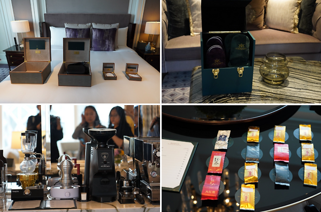 각 스위트룸은 웰니스를 콘셉트로 한다. 개별 고객의 취향에 맞는 다양한 종류의 베개와 슬리퍼를 준비했다. 또 피로를 풀 수 있는 안마기기와 마사지기 등 최상의 휴식을 위한 부대시설을 갖추고 있다. 이밖에도 드립부터 원두 분쇄기 등 다양한 에스프레소 머신과 다채로운 중국차 컬렉션을 보유한 것도 개별 투숙객의 취향을 고려한 요소들이다.