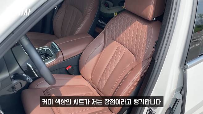 실외 디자인과 달리 이 실내 디자인 같은 경우는 3세대 F바디 X5에서 4세대 G바디로 넘어오게 되면서 디자인의 차이가 굉장히 큰 것 같아요. 특히 아날로그에서 디지털의 변화라고 표현하는 게 아주 적합할 것 같은데요. 그리고 일단 문을 열었을 때 바로 보이는 커피 색상의 시트가 저는 장점이라고 생각합니다. 시트가 굉장히 부드럽고 착좌감도 좋고요. 엉뜨를 틀었을 때 양쪽 팔걸이 부분이 같이 따뜻해져요. 그래서 이 옵션이 히트 컴포트 패키지가 들어가 있는 건데 저는 겨울에 열선을 썼을 때 생각보다 너무 좋아서 놀랐던 기억이 있습니다.