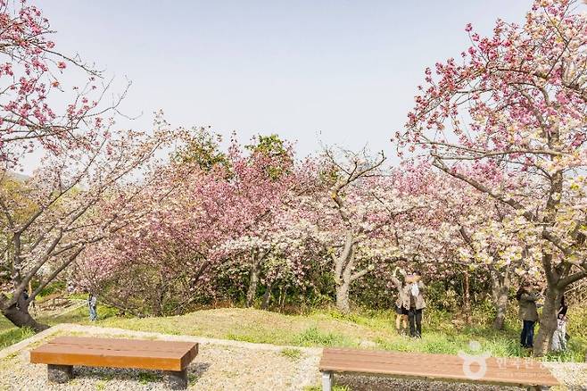 1999년 부마민주항쟁 20주년을 기념해 개관한 민주공원은 부산 시민의 희생정신을 기리는 상징적인 장소입니다. 하지만 4월 중순이 되면 이곳은 역동적인 역사의 장을 넘어 부산 최대 규모의 겹벚꽃 군락지로 탈바꿈하는 데요. 일반 벚꽃보다 약 2주 늦게 만개하여 꽃잎이 겹겹이 쌓인 채 수줍게 고개를 숙인 겹벚꽃 터널은, 보는 이로 하여금 감탄을 자아내게 하는 부산만의 특별한 봄 풍경입니다.