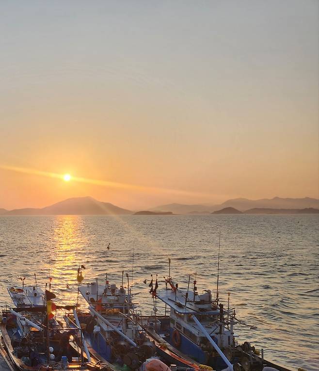 | ▲ 대동마을 선착장에서 본 아름다운 황금빛 노을 |