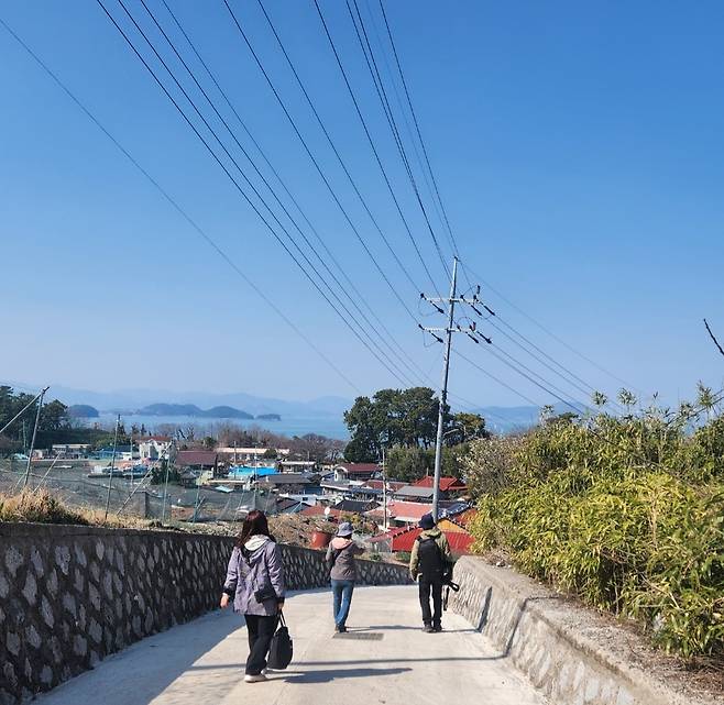봄은 섬을 먼저 찾아온 듯했다. 마을 골목길은 따스한 햇살을 머금고 있었고, 물고기 벽화와 집집마다 걸린 부표와 그물은 이곳이 어촌마을임을 말해주고 있었다.