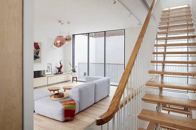 그런데 이 탑층을 침실로 사용하게 되면 색다른 매력의 공간을 창조할 수 있다. 이 런던 주택처럼 복층의 침실이 가능하다. 지붕에 창을 만들어 빛을 양을 늘리고 색다른 공간에서 책을 읽는 것도 가능해진다.