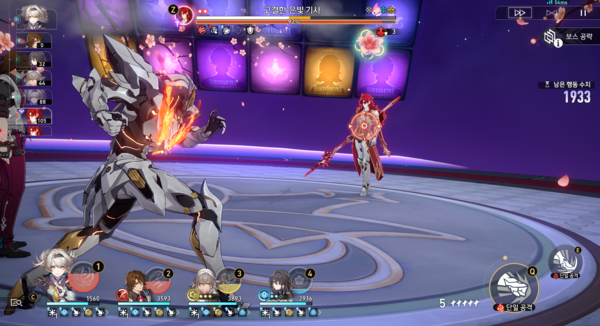 운영 방법 역시 부트힐에 비하면 심플하다. 전투 스킬을 사용해 필살기 게이지를 채우고, 필살기로 완전연소 상태에 진입해 강화 전투 스킬로 격파 및 딜을 넣는다. 사실 오토로 돌려도 제 성능이 나올 정도로 운영 방법이 단순하기 때문에 몇 번 굴려보면 감이 올 것이다.