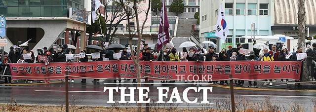 [더팩트 | 대구=박상민 기자] 한동훈 전 국민의힘 대표가 27일 오후 대구 서문시장 방문을 앞둔 가운데 한 전 대표를 지지하는 시민들과 반대하는 시민들이 집회를 하고 있다.