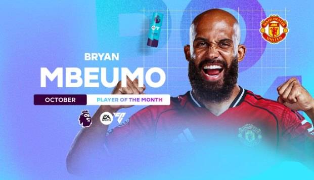 프리미어리그 사무국은 "브라이언 음뵈모가 EA SPORTS 이달의 선수상을 수상하면서 맨유는 10월에 두 번의 상을 받게 됐다"라고 밝혔다.
