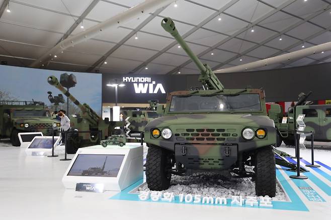 현대위아는 이번 전시회에서 경량화 105㎜ 자주포의 실물을 처음으로 공개했다. 2.5t 트럭이 견인해서 사용해야 했던 KH178 105㎜ 곡사포의 무게를 줄이고, 자동사격통제장치 등을 보완해 소형전술차량에 탑재한 제품이다. 이를 통해 협소한 지형과 험로에서도 신속하게 자주포를 활용할 수 있도록 했다. 아울러 기동 헬기를 활용한 공중 수송도 가능하도록 했다.