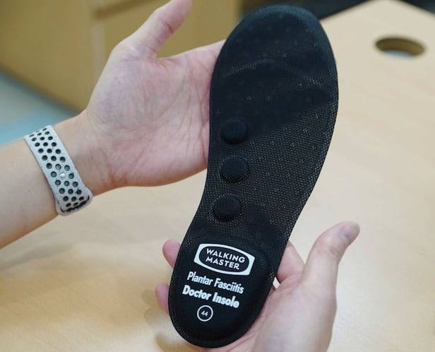시중에 족저근막염 치료용 안창이 있지만 활용도가 떨어졌다. 석고로 발의 모양을 본떠서 발의 아치 전체를 지지하는 전접촉 방식의 안창인데, 제작 기간이 오래 걸리는데다 가격이 20만~30만원대로 비싼 편이다. 문득 한의학 애호가인 아버지가 지압 발판에 종종 서 있던 모습이 떠올랐다. 돌기를 잘 활용하면 발 전체를 받치지 않고도 발에 가해지는 압력을 분산할 수 있을 거라고 판단했다. 돌기가 있는 족저근막염 안창 개발에 들어갔다.