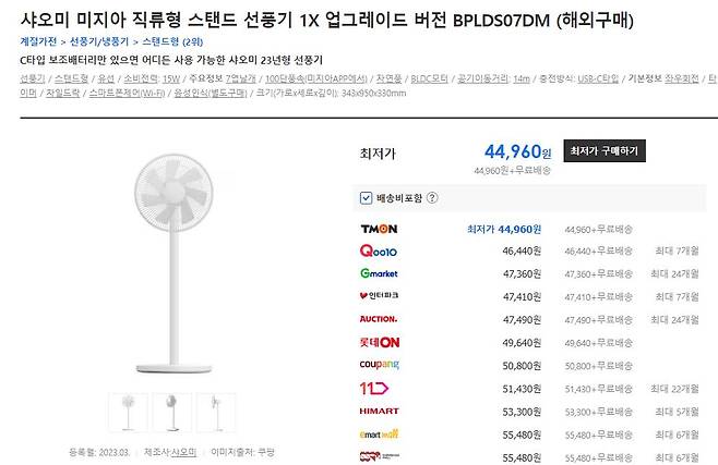▲ 샤오미 미지아 무선 선풍기 서큘레이터 5세대 BPLDS05DM 해외구매 85,120원