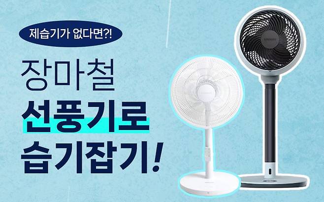 김 CM 최근에 제가 인포그래픽으로 만들었는데 요즘 장마철이잖아요. 집에 제습기가 없으면 생수 페트병을 얼려요. 빵빵 얼린 생수 페트병을 쟁반 위에 두고 거기다가 선풍기 바람 쐬어주면 공기 중에 수분이 페트병 겉면에 모여서 주변 습도가 낮아지는 효과가 있어요. 냉방에 제습 효과까지 더해지는 거죠. 저도 TV에서 보고 실제로 해봤는데 효과 있더라고요. 선풍기 이렇게 쓰는 것도 괜찮습니다.