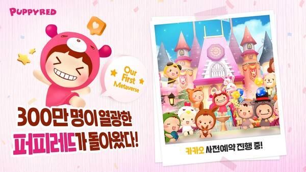 8월말 정식 오픈 예정인 퍼피레드는 지난 2003년 출시 이후 2016년까지 300만 명 이상의 유저들에게 사랑을 받았던 3D 커뮤니티로, 과거 PC버전의 퍼피레드를 2022년 감성으로 재해석한 모바일 3D 메타버스다.