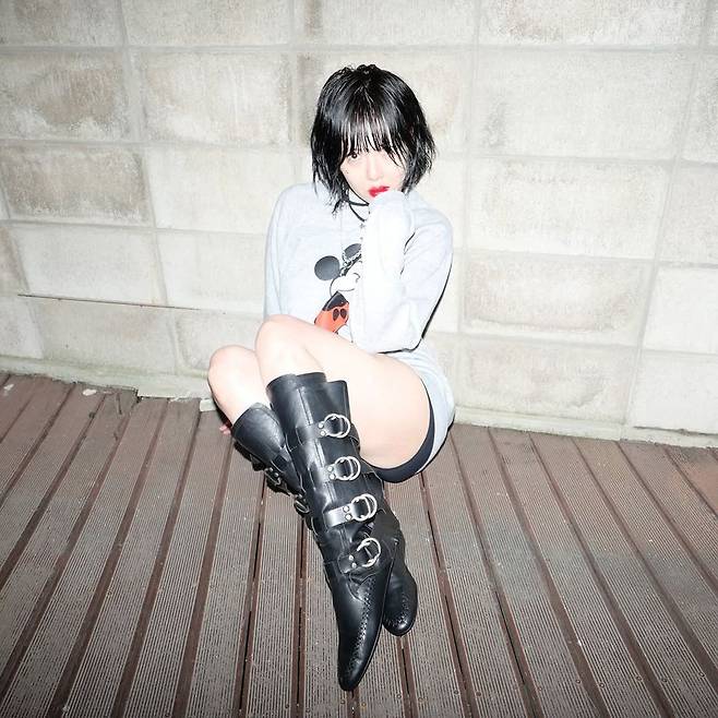 스타일링을 한층 끌어올린 건 젖은 듯 연출한 짧은 블랙 헤어와 강렬한 레드립 메이크업이다. Y2K 감성을 떠오르게 하는 이 헤어스타일은 무심한 듯 시크하고, 레드립은 전체 룩의 에너지를 시각적으로 완성시킨다. 단순히 예쁜 것을 넘어, 캐릭터 있는 스타일을 원한다면 현아식 연출법이 좋은 참고가 된다.