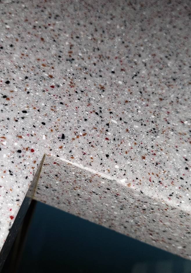 한샘 싱크대 인조대리석 상판인데요. ㄱ자 꺾이는 부분에 금이 ㅠㅠ 가버렸네요. 한 10cm 일자로 나갔는데요. 이거 복원 비용이 얼마나 할까요?