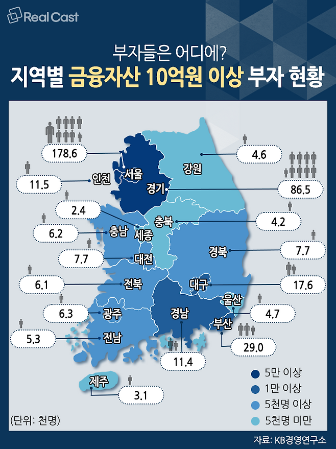 이중 대구에는 약 1만7,600명의 부자들이 살고 있습니다. 대구 인구의 0.74%가 부자인 셈입니다. 수도권의 광역시인 인천의 부자 비율이 0.38%(1만1,500명)인 것과 비교해 보면, 대구 내 부자 비율이 꽤나 유의미하게 많다는 것을 알 수 있습니다.