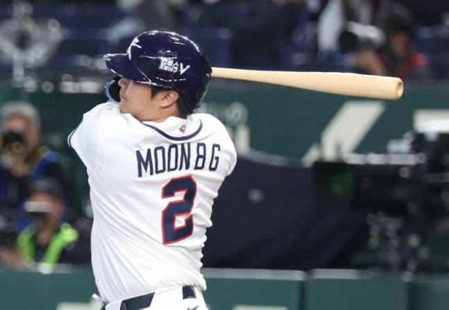 단 한 번의 스윙으로 도쿄돔의 공기를 바꾼 문보경의 '미사일' 홈런이었다.