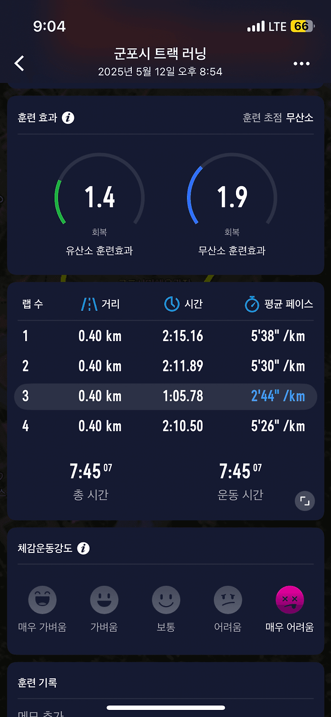 가장 빠른 400m로 뛴거 같네요 ㅎㅎ