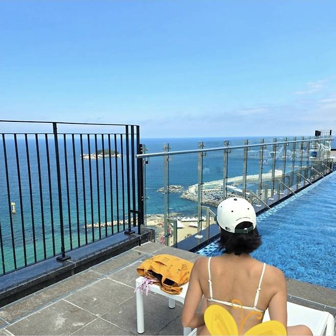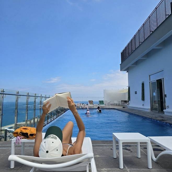 배우 김지호가 고성에 위치한 인피니티 풀에서 즐긴 여름휴가 컷을 공개해 눈길을 끌었습니다.