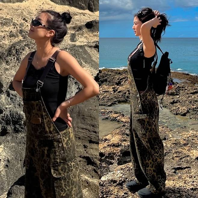 공개한 사진에서 지효는 올려 묶은 머리에 어깨가 드러난 민소매 티셔츠와 멜빵 바지를 착용한 여행룩으로 편안하면서도 힙한 스타일을 선보였다.