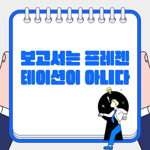 발표자 중심의 '프레젠테이션'과는 달리, 보고서는 '누구나 이해 가능', '보고자 의도 반영', '보고받는 사람을 설득'하는 문서여야 한다! 잊지 말자! 😉
