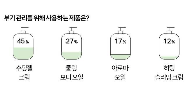그렇다면 달라진 보디 케어 제품들의 특징은 무엇일까? 퉁퉁 부은 코끼리 다리 같은 종아리에는 혈액순환과 탄력 케어가 동시에 이뤄져야 한다. 그래서 피부 혈행 개선에 효과적인 에스신 성분과 황산마그네슘을 함유한 크림을 괄사 형태 애플리케이터와 함께 사용할 수 있도록 제작해 취침 전 마사지하는 것만으로도 부기와 탄력 케어가 동시에 가능하게 만든 것. 이 외에도 가슴이나 엉밑살 등 탄력 케어가 집중적으로 이뤄져야 하는 부위는 저분자 콜라겐을 함유한 제품으로 단순히 마사지만 하는 것이 아닌 실질적으로 탄력이 부족한 곳에 빠르게 볼륨이 채워질 수 있도록 업그레이드됐다. 부위별 맞춤형 제품을 구매했다면 다음은 잘 바르는 방법에 대해 알아보자.
