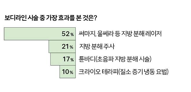 〈누르면, 빠진다〉의 저자 히사시 유코에 따르면 이러한 기능성 제품을 바를 때는 고민 부위를 10~15초 이상 지그시 눌러 자극을 주는 게 포인트라고 한다. 누르며 생기는 자극이 피부 아래 얇은 곳부터 깊은 곳까지 고르게 분포한 림프와 혈액, 근육 등에 전해지며 몸 전체의 흐름을 원활하게 하고 몸 상태를 최상으로 끌어올려 살이 빠지고 피부에 탄력이 생긴다고. 이렇게 하면 몸속 독소가 배출되고 다이어트 스위치가 켜져 몸매가 한결 탄탄하고 슬림해진 걸 느낄 수 있을 거다. 마지막으로 여름철 가장 신경 쓰이는 팔뚝살이나 브래지어 옆으로 튀어나온 부유방, 수영복 아래 볼록 나온 뱃살이나 엉밑살 등 단기간 관리로 빼기 힘든 부위는 국소마취 후 지방을 빼는 지방 추출 주사나 미니 지방 흡입을 고려해보는 것도 방법이다. 시술 부위에 따라 차이가 있지만 30분~1시간 이내로 시술 시간이 짧고, 지방을 추출하는 양이 적어 회복 기간도 짧은 게 장점. 시술 후 열 초음파로 지방 분해와 탄력 관리를 동시에 하는 울핏 시술이나 고주파, 변조 중주파, 저준위 레이저를 동시에 조사하는 노블쉐이프 시술을 병행하면 살 처짐 없이 빠르게 라인 개선 효과를 볼 수 있다.