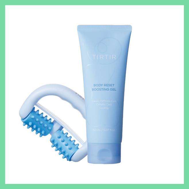 1특허받은 슬림라이트 성분과 카페인이 즉각적으로 부기를 제거한다. 마사저와 함께 사용하면 혈행을 원활하게 해 셀룰라이트를 개선한다. 바디 리셋 부스팅 젤 2만5천원, 바디 리셋 마사저 8천원 모두 Tirtir.