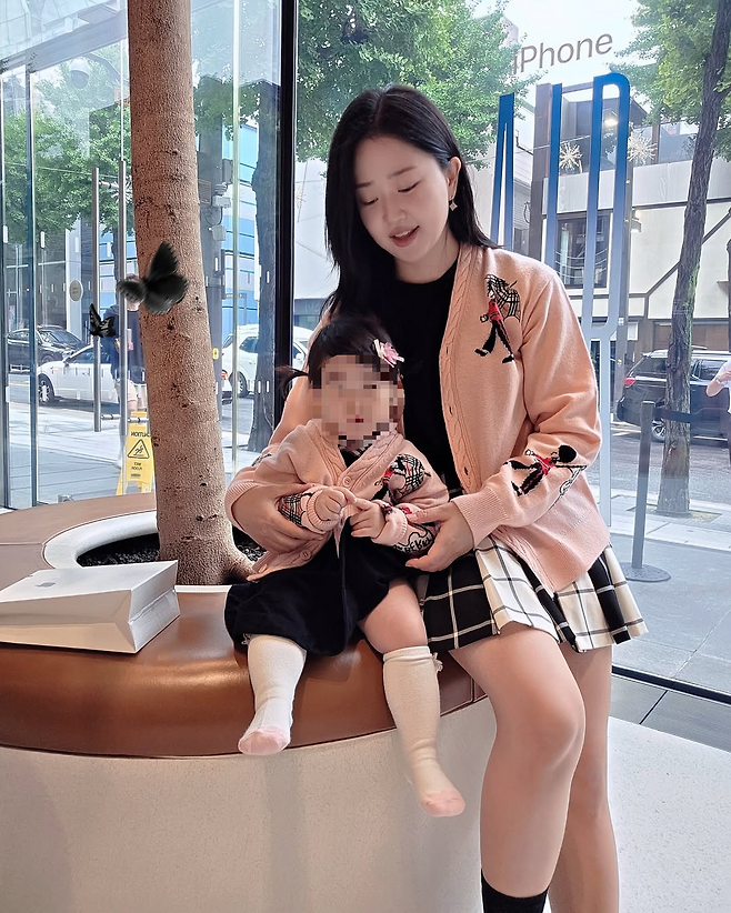 딸은 헤어핀과 원피스로 귀여움을 강조했고, 미니 카디건이 포근한 무드를 완성했다.