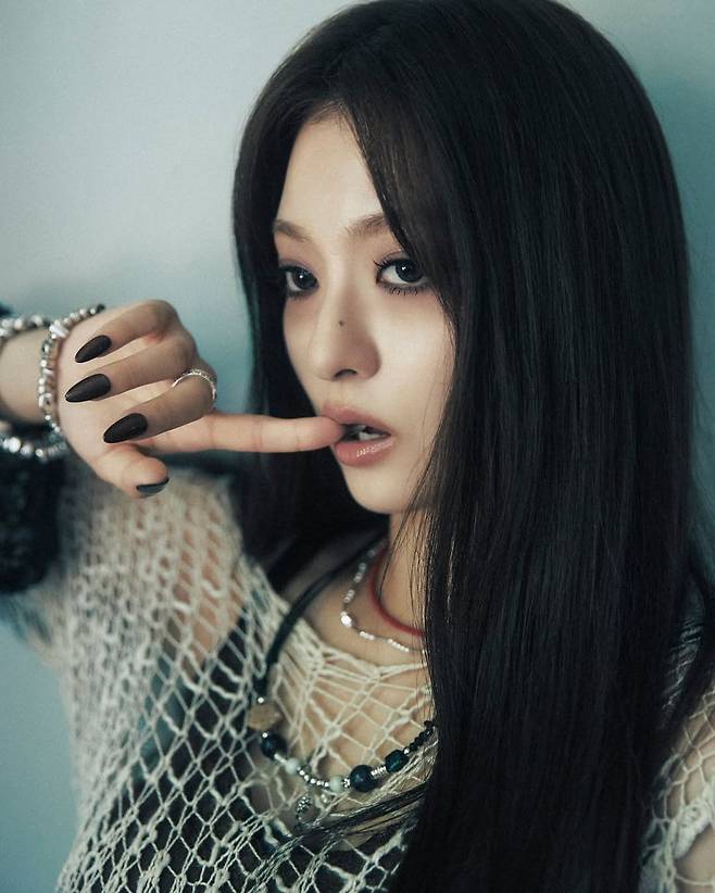 이나경은 긴 생머리를 높이 묶은 포니테일에 음반 CD를 커다란 이어링처럼 걸쳐 시선을 압도했다. 특유의 도톰한 입술과 샤프한 콧날이 어우러지며, 마치 한 편의 Y2K 뮤직비디오 주인공처럼 분위기를 자아낸다. 그레이 후드 집업으로 전체적인 룩은 캐주얼하지만, 이 CD 이어링 하나로 무드를 단숨에 180도 전환했다.