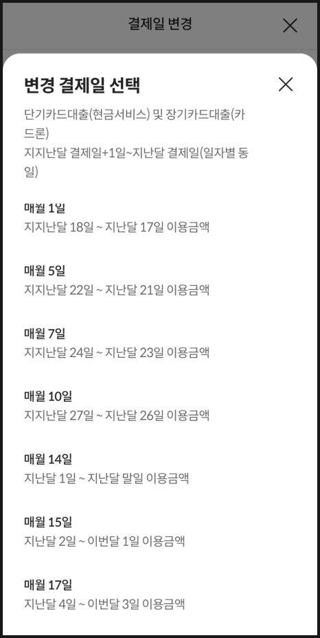 결제일 정보까지 나와있으니 본인의 라이프 스타일에 맞게 선택하면 되겠죠.
