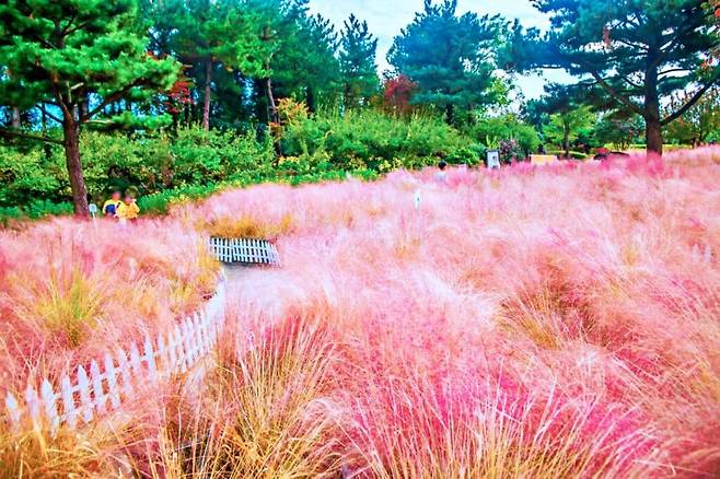 현재 야자정원, 하늘정원, 카페정원 등 공원 곳곳이 핑크뮬리로 가득해 어디에서나 그림 같은 풍경을 감상할 수 있다.