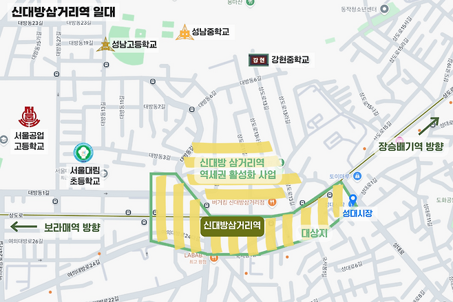 다만 신중한 접근이 필요하다는 의견도 나온다. 서진형 광운대 부동산법무학과 교수는 “신대방삼거리 일대는 여의도와 강남 접근성이 뛰어나고 주변 역세권과 연결되는 교통 경쟁력이 높은 지역”이라며 “지구단위계획 재정비를 통해 상업·업무 기능이 강화될 경우 서울 서남권의 새로운 직주근접 거점으로 성장할 가능성이 있다”고 평가했다.