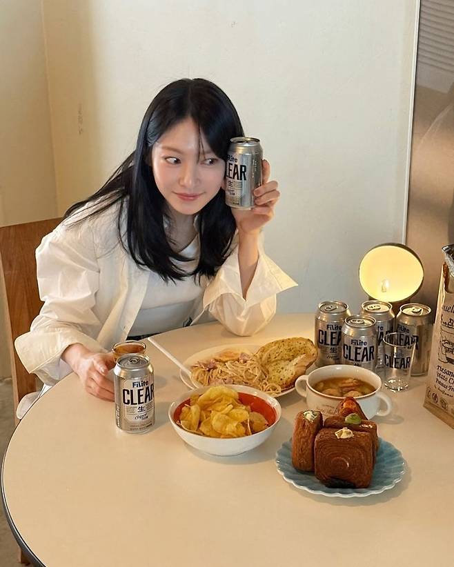 함께 공개된 사진 속에서는 필라이트 클리어 캔과 함께 파스타, 감자칩 등 간단한 핑거푸드가 놓인 테이블이 배경으로 등장해 소소하지만 정감 있는 홈파티 분위기를 자아낸다. 여기에 공승연 특유의 단정한 헤어스타일과 은은한 미소는 전체적인 스타일링에 따뜻한 감성을 더하며 보는 이들에게 힐링을 전한다.