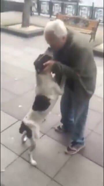 그러자 길거리에 있던 해당 강아지는 고개를 들더니 지금 꿈이라도 꾸는 것 같다는 듯이 몸을 일으켰습니다. 이내 할아버지에게 천천히 걸음을 내디뎠고 곧 꼬리를 흔들며 할아버지에게 달려가 품에 안겼습니다.