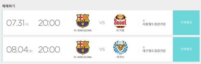 바르셀로나 대구 경기 티켓 예매
