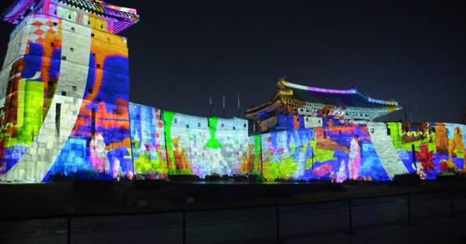 화서문에서 장안문까지 이어지는 성곽 산책로는 미디어아트쇼 기간 동안 특별한 조명과 전시로 꾸며집니다.